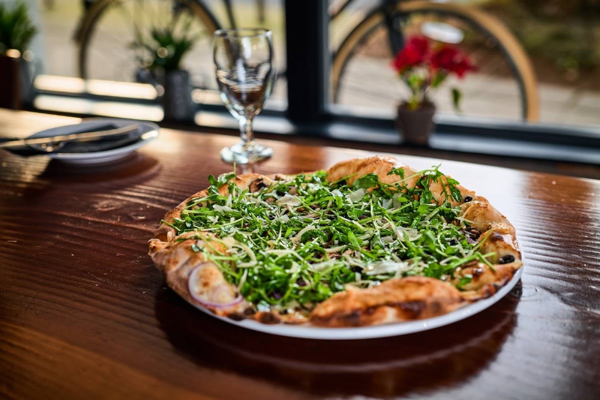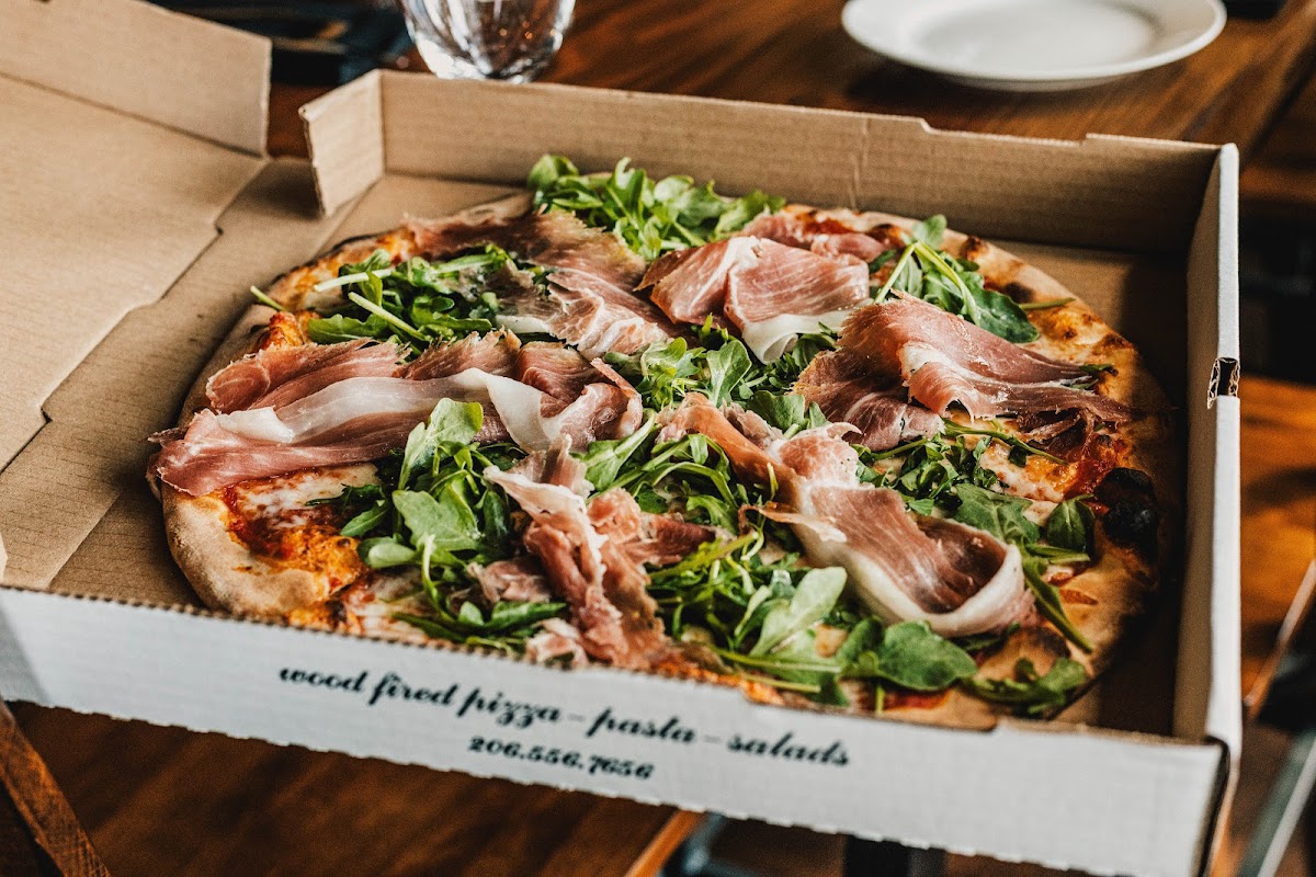 We walked past La Rocca weekly, always curious, and after a 40-mile bike ride that left us ravenous, we finally made our move. We walked in ready to inhale anything with cheese and carbs, and honestly, we could’ve polished off two pizzas without blinking. We ordered the Quattro Stagioni, expecting a harmonious blend of toppings. What arrived was a surprise. Instead of the usual mix, each quarter of the pizza had its own distinct topping, like four mini pizzas sharing a crust but refusing to mingle. It was visually striking, definitely different, and not quite what we were craving but still delicious to say the least cause we polished it off as usual. That said, the crust was beautifully done, the ingredients fresh! We also tried the Parma Salad, which sadly wasn’t our fav. Bland arugula, a few cherry tomatoes, but had lotsa shaved parmesan and the prosciutto reminded me of just a couple slices of lunchmeat. It was weird because the same meat was on the pizza and it tasted different. I would give another try on their salad on our next visit. But then came the house wine, it was smooth, balanced, and the perfect companion to our pizza. It brought everything together in a way the salad couldn’t, and honestly, it might’ve saved the meal from becoming a post-ride tragedy. I loved vibe inside warm and welcoming. It’s clear they care about quality and tradition. The umbrellas on the ceiling were my favorite and decor was fun to look at. We’ll be back (probably hungry again), but next time we’ll go for something a little more unified. Maybe the Margherita or Capricciosa. I can see why they won the Seattle times best pizza place in 2024.