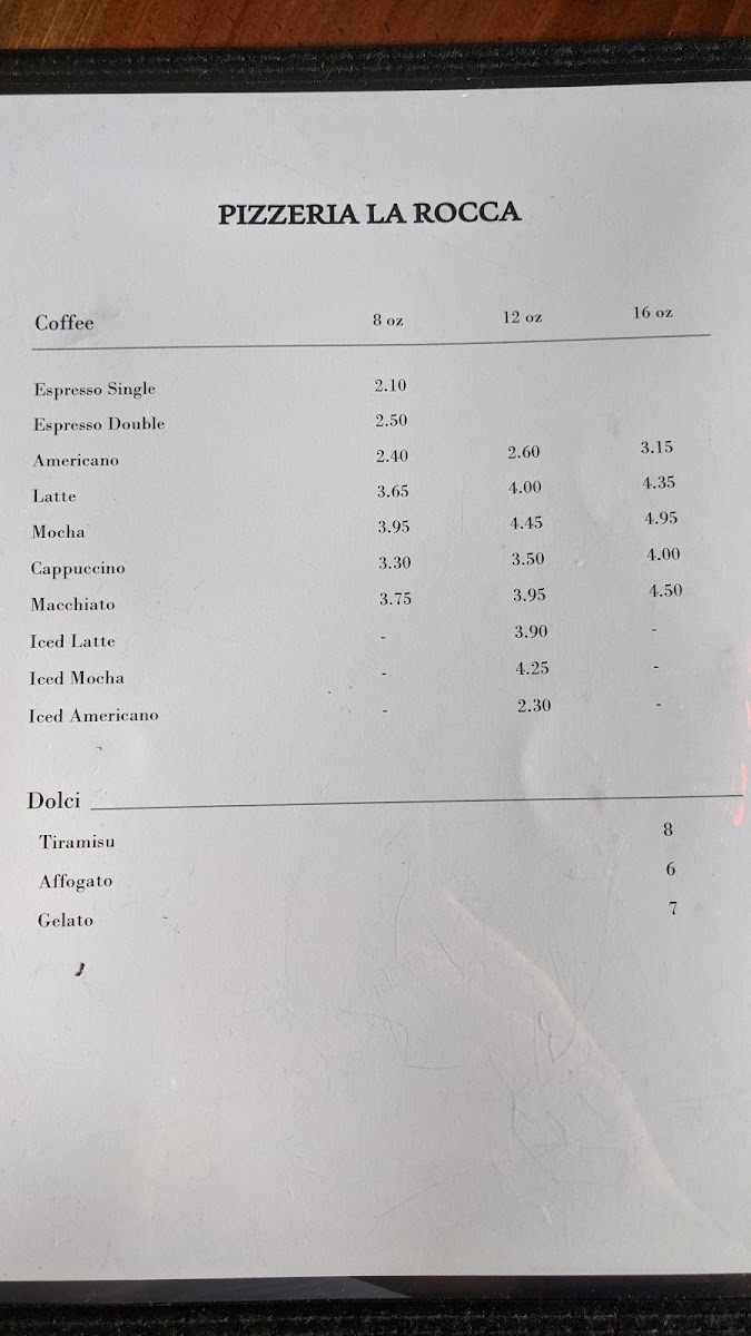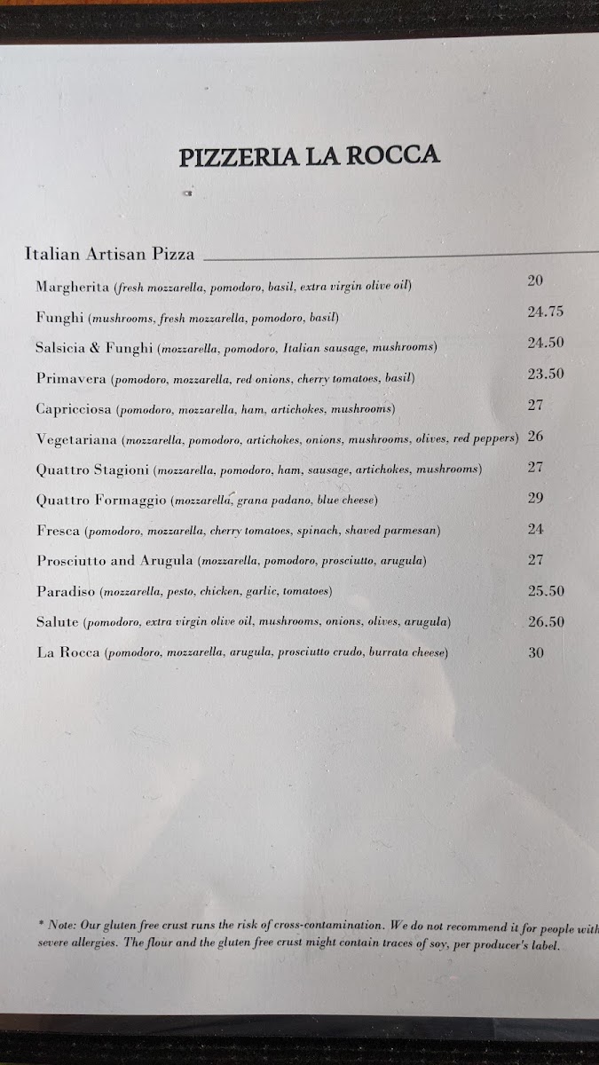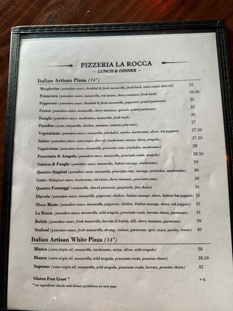 Pizzeria La Rocca Menu